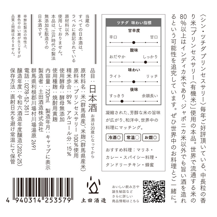シン・ツチダと同じ仕込み配合でありながら、プリンセスサリー特有の軽やかさと甘み・酸味のバランスが特徴です。
