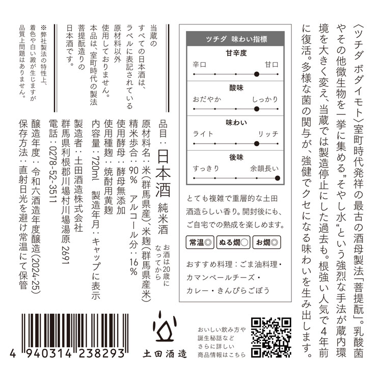 とても複雑で重層的な土田酒造らしい香り。開封後も、ご自宅での熟成を楽しめます。
